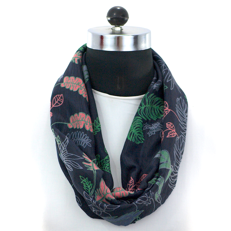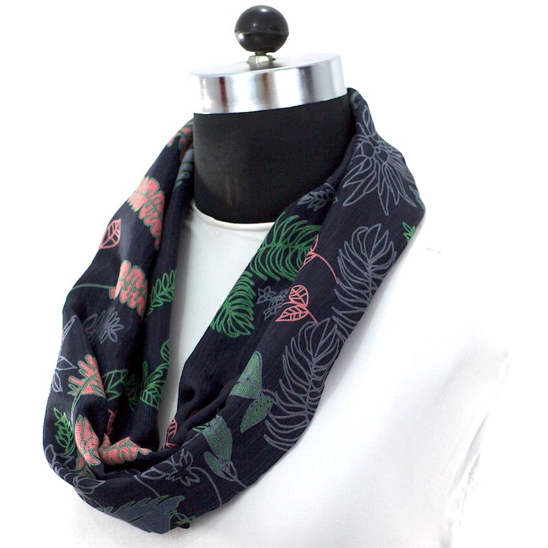 Color: Blue black base, pink outlined flowers