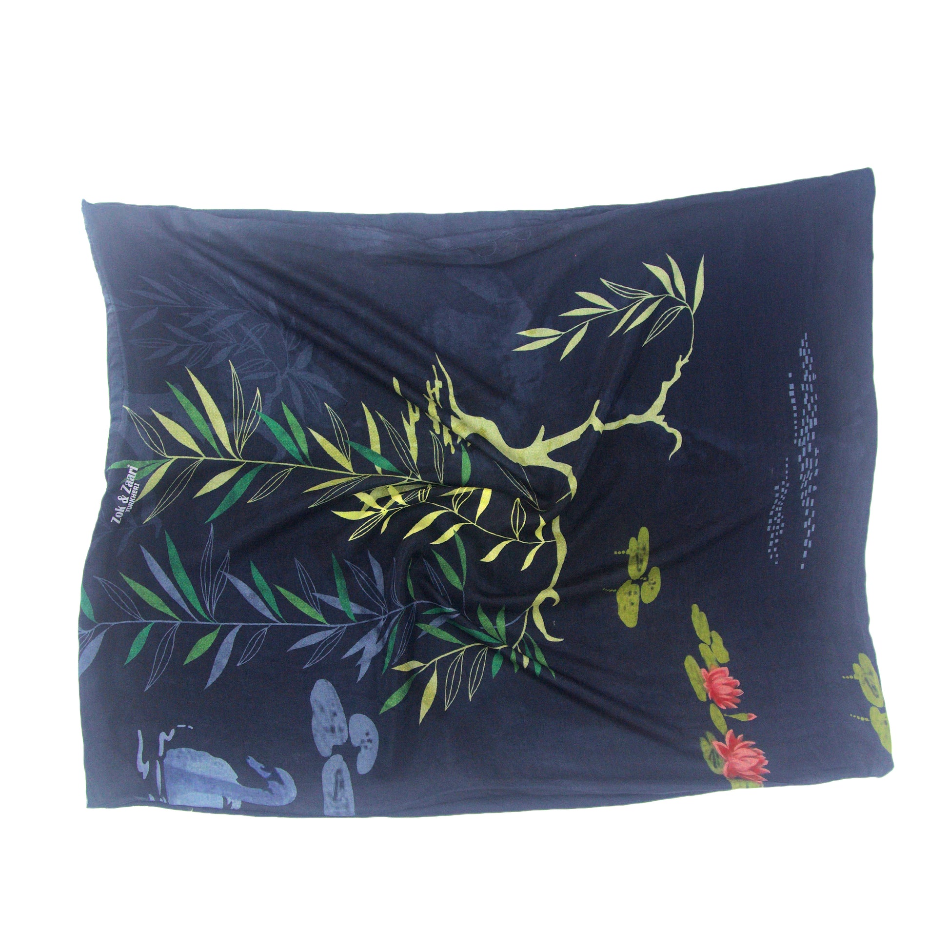 Color: Dark blue base, pond print, duck