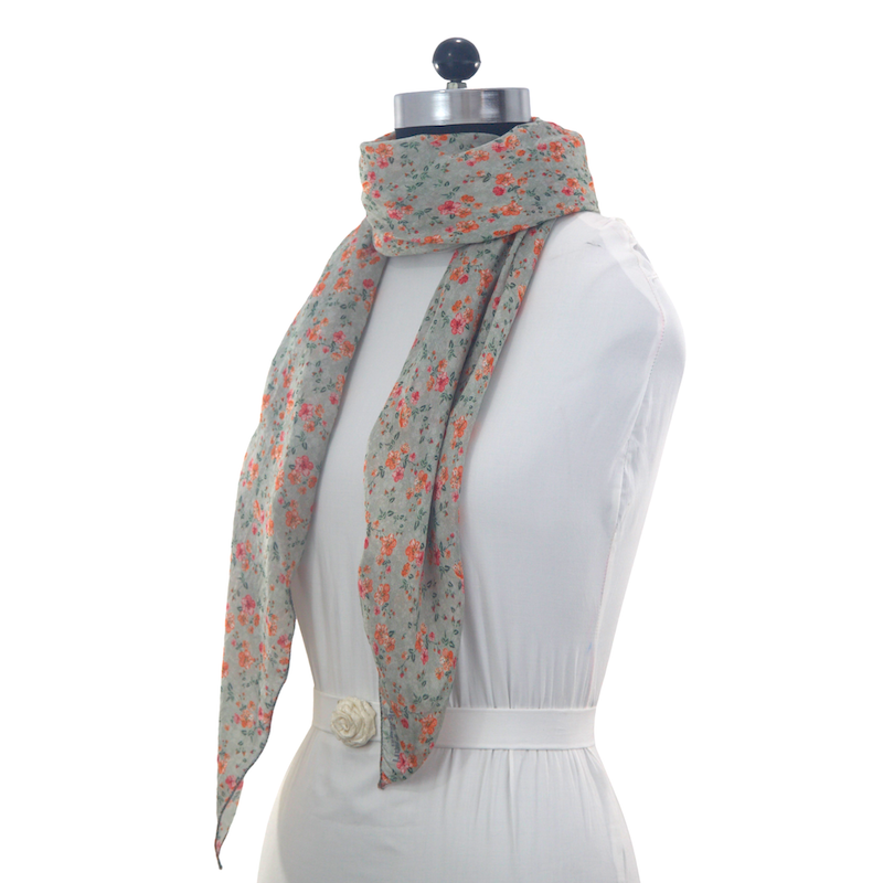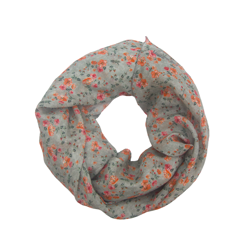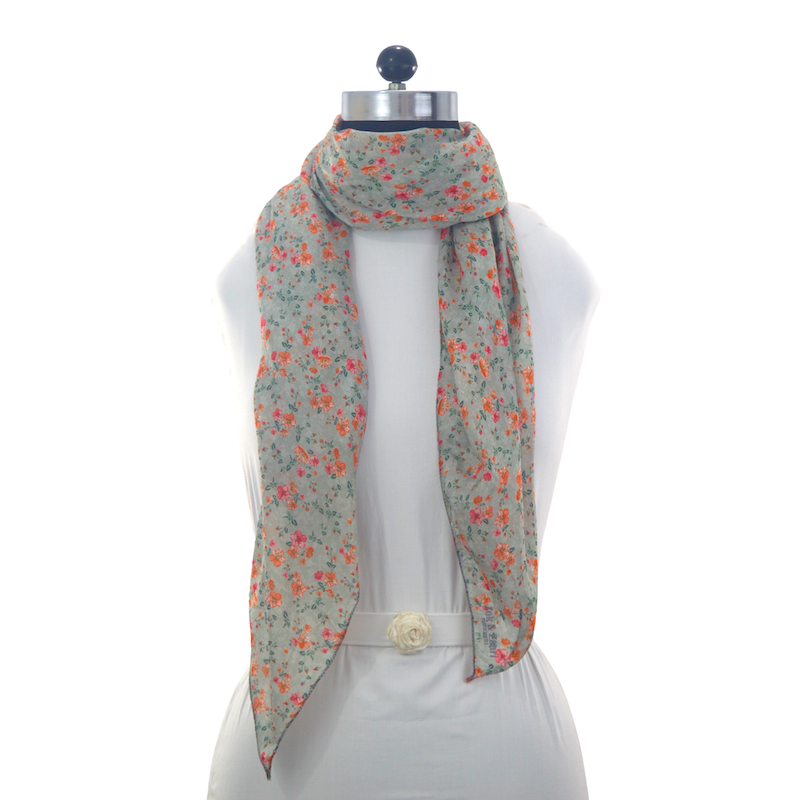 Color: Grey base mini orange and red flowers with green leaves