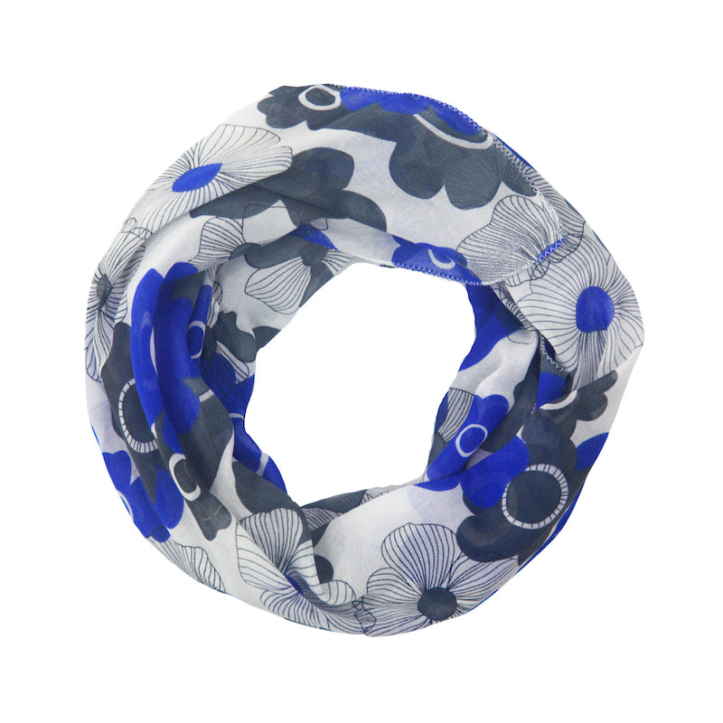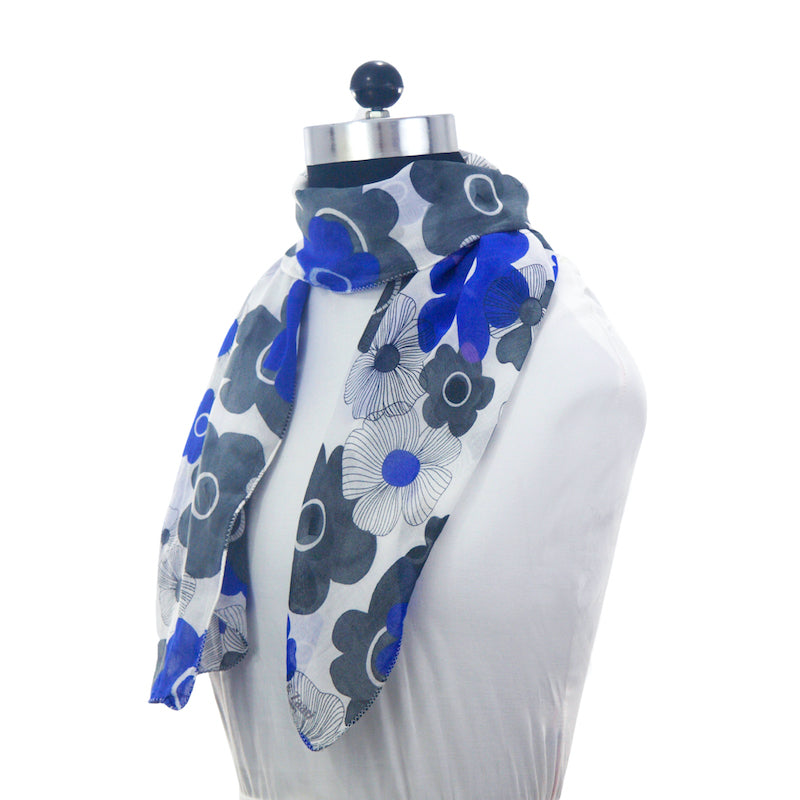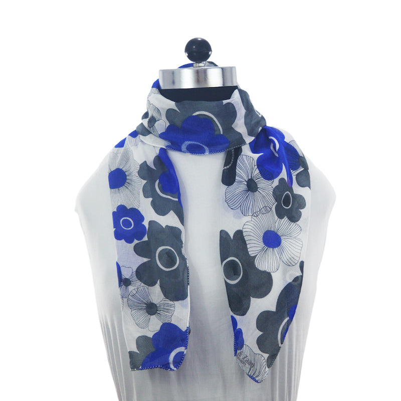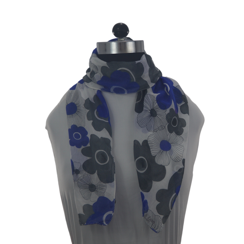 Color: White base, blue and grey flowers